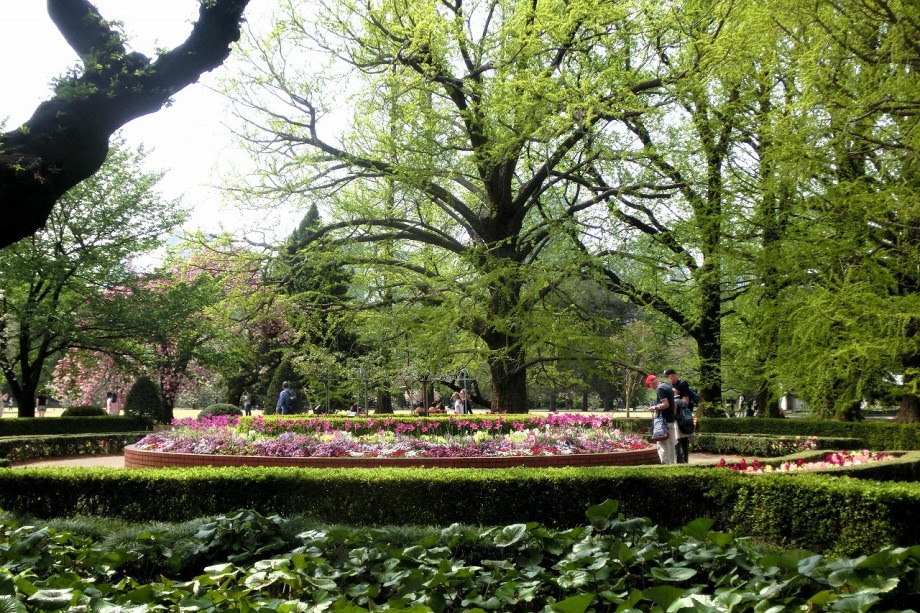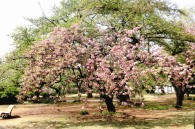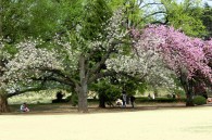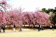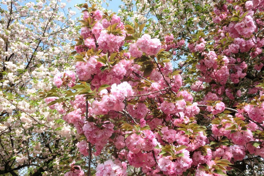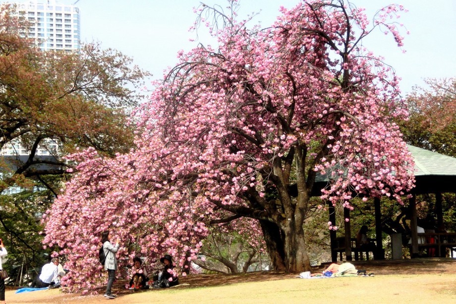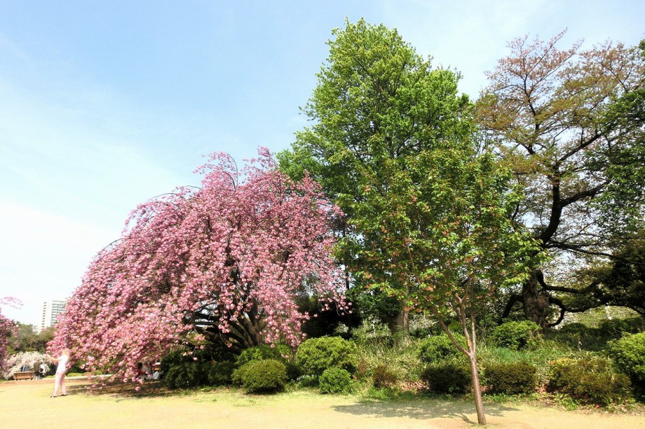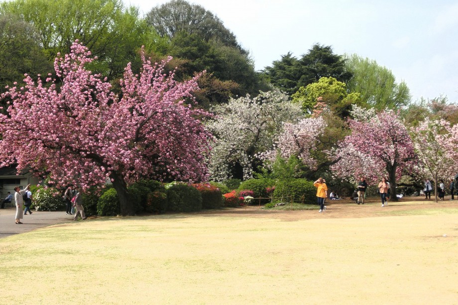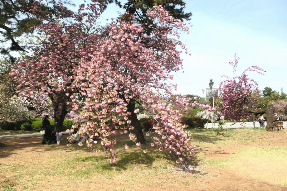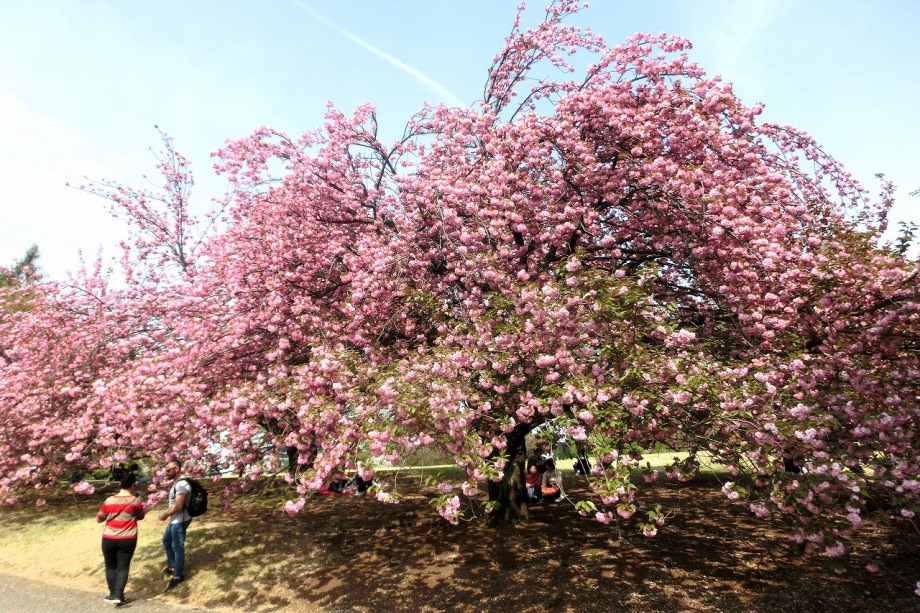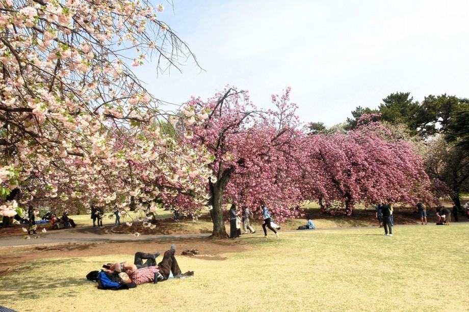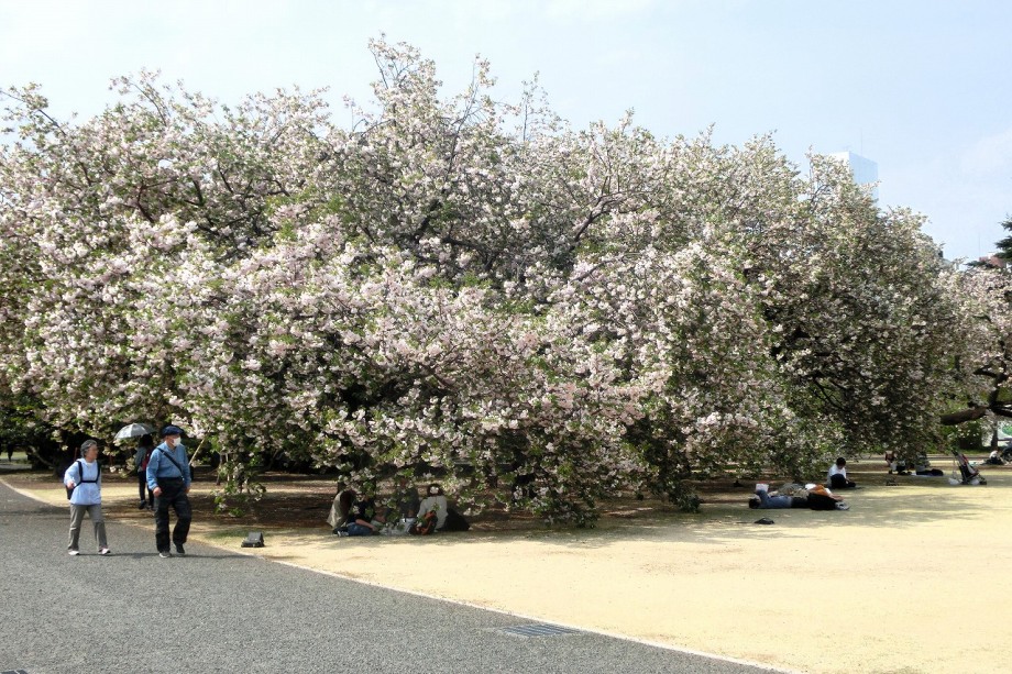 「一言」天気が良かったので新宿御苑のボタン桜を見に行きました。ボタン桜が見頃でした。新宿御苑の桜の木は非常に大きいので 満開になると迫力があります。新宿御苑には濃いピンクの関山、薄いピンクのフゲンゾウや一葉、青い桜など色々な種類の 八重桜が咲いているので見ていて楽しめます。大きなハルモミジの木も紅葉していて綺麗です。