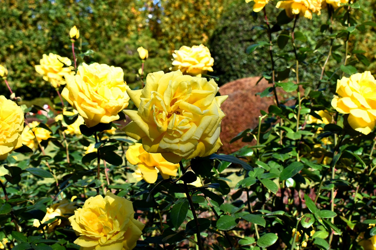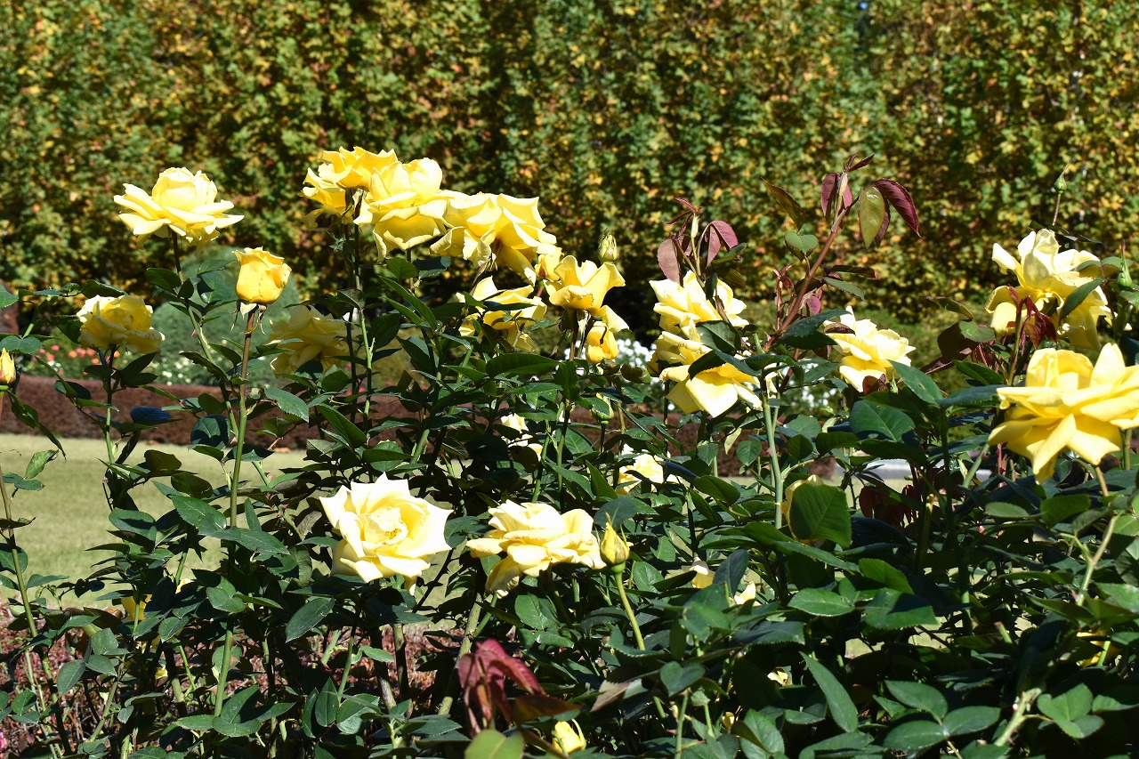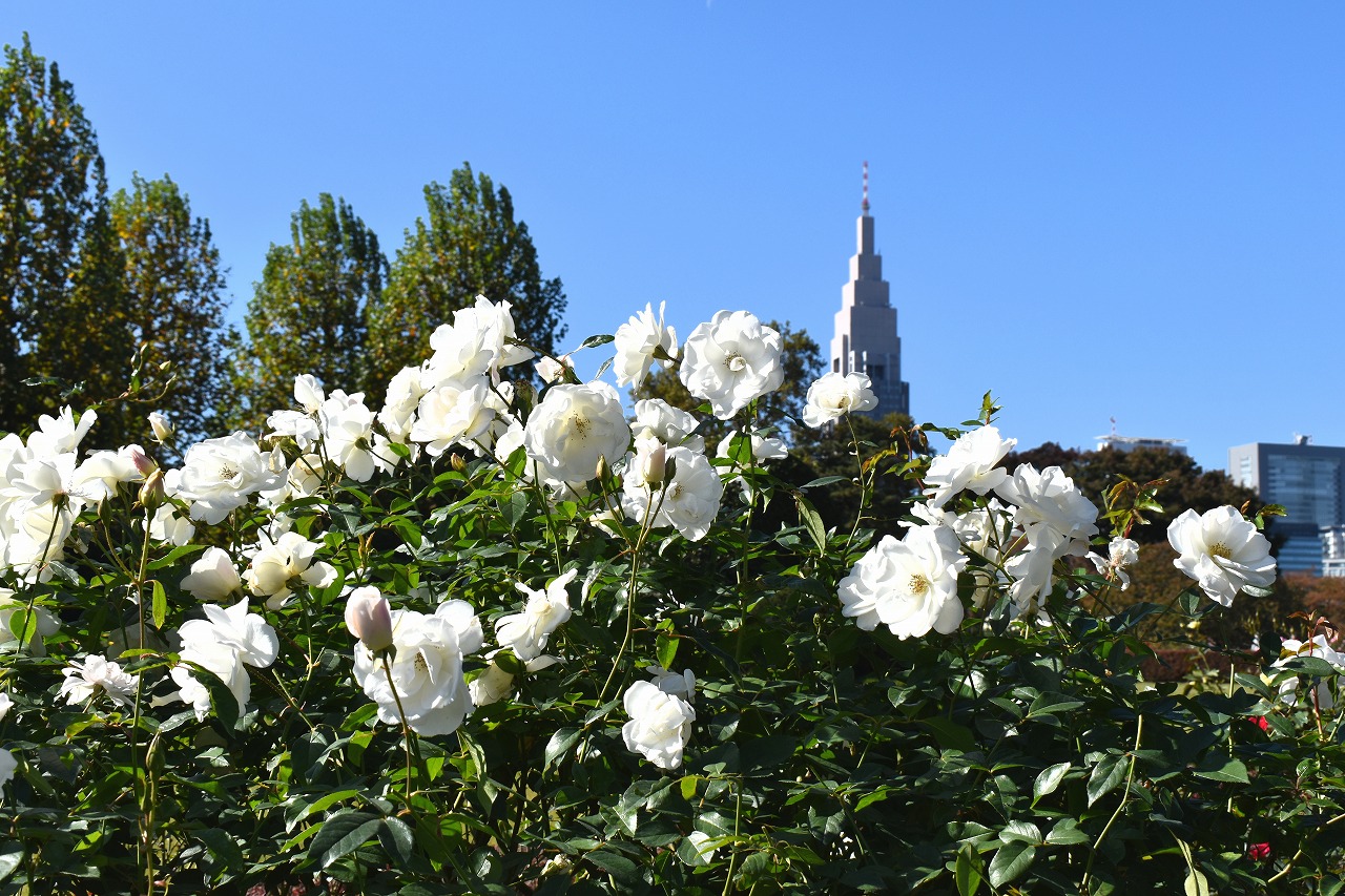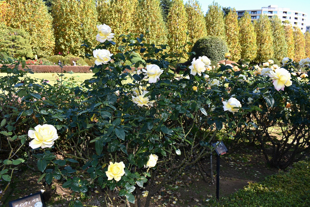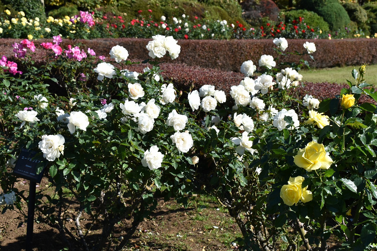 「一言」新宿御苑に行きました。今年は銀杏の黄葉が遅れていてまだまだイチョウの葉は青い状況でした。 バラ園に行くとバラの花が遅れていて、色々な色のバラの花がたくさん咲いて見頃という状況でした。 綺麗な花がたくさん咲いていましたので写真を撮りました。つつじやつわぶきなどの花も咲いていました。
